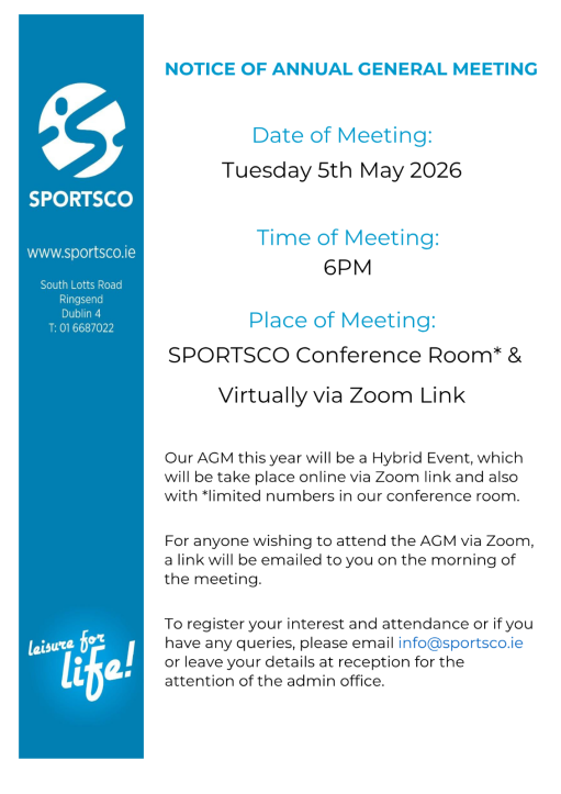 SPORTSCO AGM - TUESDAY 5TH MAY 6PM